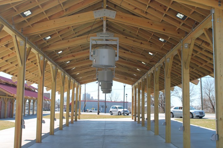 Construction of two shelter buildings utilizing post and beam infrastructure and metal roofs. Also including restroom facilities, masonry mechanical room, and interior lighting and fans. Site work included adjoining walkways and associated landscaping.
